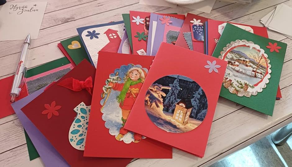 5.11 klo 13 keskiviikkona taas Joulukortti pöhinää jaettavaksi yksinäisille ikäihmisille. Ota vanhoja joulukortteja leikeltäväksi, saksejakin saisi olla lisää. Anna-Liisa Hakala opastaa, tuo…