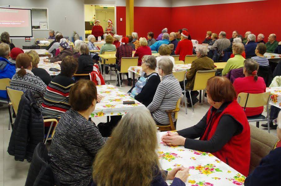 Kuvassa puuronsyöjiä edellisessä kerho paikassa S-Marketin tiloissa ennen koronaa, kaikestaan toistasataa.